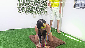 Rips Sophie Reades Yoga Pants And Gives Her Pussy A Good Fucking