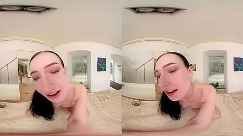 La ragazza ha guardato il porno con gli occhiali vr e si masturbava la figa, poi il ragazzo l'ha ⬛ scopata